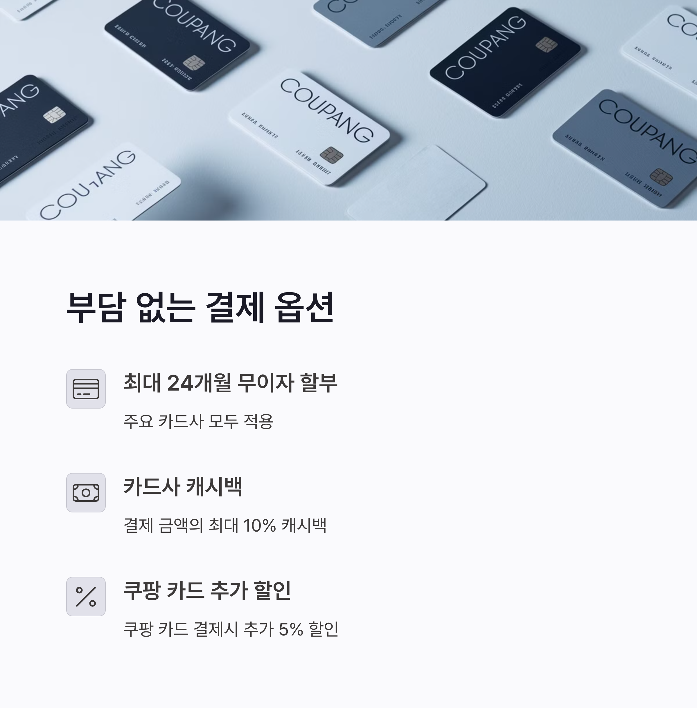 쿠팡은 다양한 카드사와 제휴하여 사전예약 기간 동안 최대 12% 카드 즉시할인을 제공합니다.